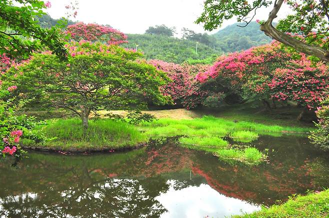 | ▲ 명옥헌 앞쪽 큰 연못에는 군데군데 녹조가 보이긴 했지만 반영은 여전히 아름다웠다. |