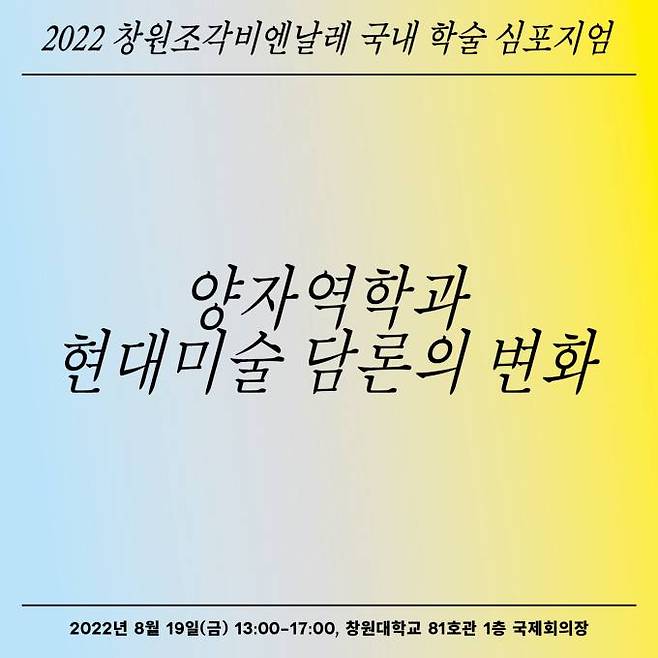 행사에는 2022창원조각비엔날레 초대작가들과 양자역학 전문가, 국내 미술이론가들이 발제자로 참여한다.