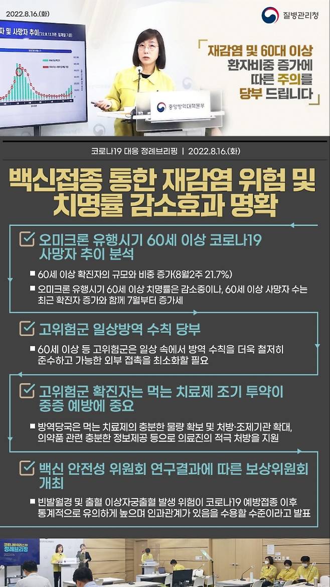 재감염 및 60대 이상 환자 비중 증가 따른 주의 당부