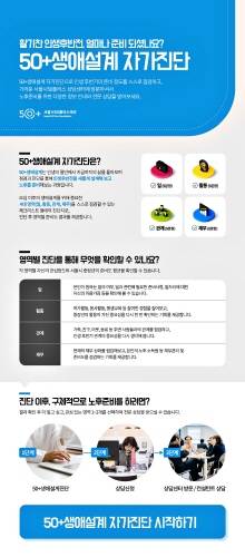 온라인 자가진단 서비스는 중장년층이 노후를 준비하는 데 중요한 일, 활동, 관계, 재무 등 4대 영역에 대해 스스로 점검해 볼 수 있는 34개의 문항으로 구성돼 있다.