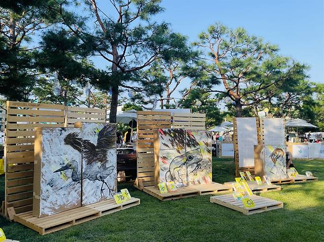 임승희 작가는, "수원문화재 야행은 수원에서 가장 유명한 축제죠. 그 축제 현장에 의미 있는 전시를 준비했어요. 야행의 전체 주제는 '기억'이에요. 수원에 있는 보호종들과 사람이 함께 마주보면서 같이 있어 가치 있는 기억의 시간을 가질 수 있도록 버려진 쓰레기로 작품을 만들었습니다"라고 말하며 이번 전시에 대한 소감을 전했다.