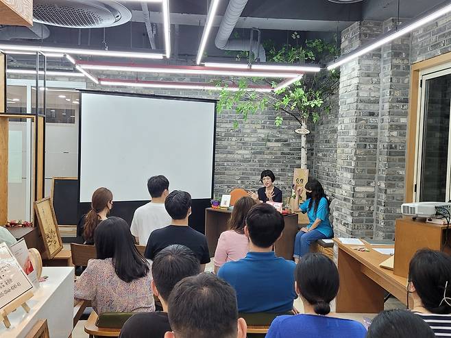 | ▲ 양단우 작가가 '일상의 기억, 책가도' 토크살롱에서 시민들과 함께하고 있다. |
