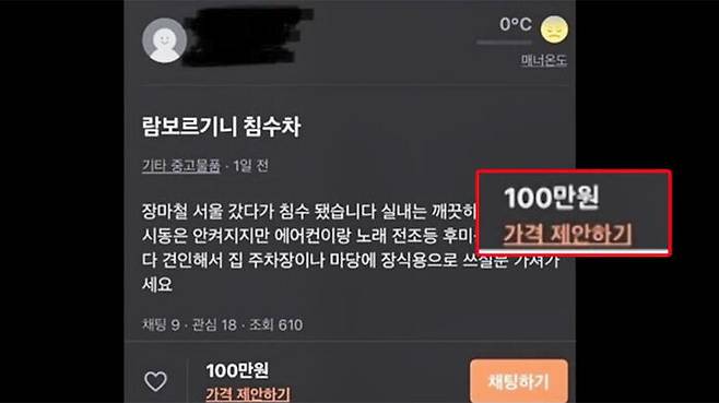 최근 수도권에 내린 기록적인 폭우로 1만 대에 가까운 차량이 침수 피해를 입은 가운데, 한 중고 거래 플랫폼에 고가의 스포츠카인 람보르기니 침수차가 매물로 나와 눈길을 끌고 있습니다.
