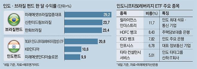 - 한달 수익률 20%…브라질·印 펀드 날았다