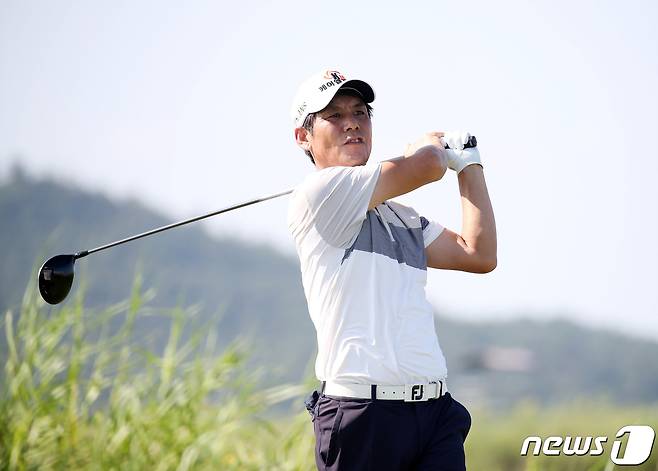 (서울=뉴스1) = 박영수가 17일 전라남도 영암 사우스링스(카일필립스코스)에서 열린 '제26회 KPGA 시니어 선수권대회' 1라운드 16번 홀에서 티샷을 치고 있다. (KPGA 제공) 2022.8.17/뉴스1