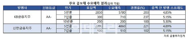 KB지주·신한지주 수요예측서 모집액 2배 몰려 흥행
