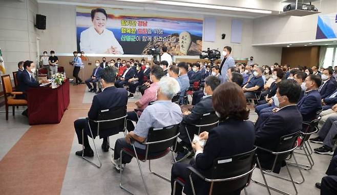 행사는 산청군수의 환영사, 도지사의 인사말, 민선8기 도정비전 발표, 산청군의 현안보고에 이어 도민과의 대화 순으로 진행됐다.