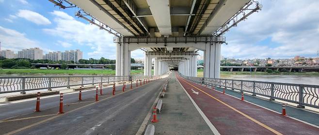 길이가 총 765m로 한강 다리 중 가장 짧고, 반포한강공원이 바로 연결돼 평소에도 보행자와 자전거 이용자가 많다. 지난해 시민 3200여명을 대상으로 ‘걸어서 혹은 자전거를 타고 건너본 경험이 있는 한강 다리’를 물은 결과 잠수교(40.6%)가 가장 많았다.