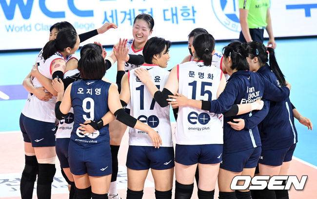 경기 종료 후 GS칼텍스 선수들이 승리의 기쁨을 나누고 있다. 2022.08.17 /sunday@osen.co.kr