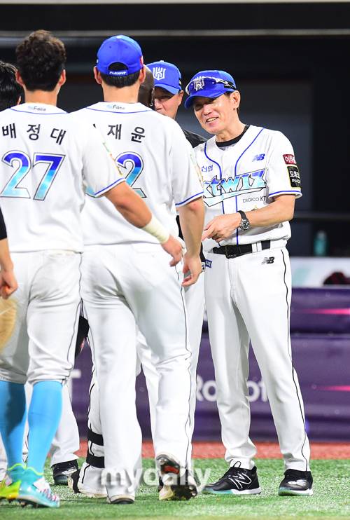 [MD포토] 기뻐하는 이강철 감독 '신나는 5연승'