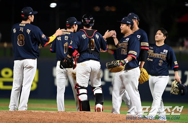 2022 KBO리그 SSG 랜더스와 KIA 타이거즈의 경기가 17일 광주KIA챔피언스필드에서 열렸다. KIA가 4대3으로 승리했다. 경기 종료 후 기쁨을 나누는 KIA 선수들의 모습. 광주=허상욱 기자wook@sportschosun.com/2022.08.17/
