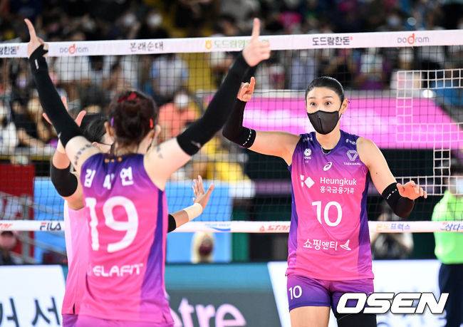 5세트 흥국생명 김연경이 김미연의 서브 에이스에 환호하고 있다. 2022.08.17 /sunday@osen.co.kr