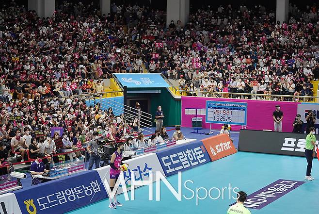 (MHN스포츠 순천, 이지숙 기자) 17일 오후 전남 순천 팔마체육관에서 '2022 순천 도드람컵 프로배구대회 흥국생명과 GS칼텍스의 경기가 열렸다.
