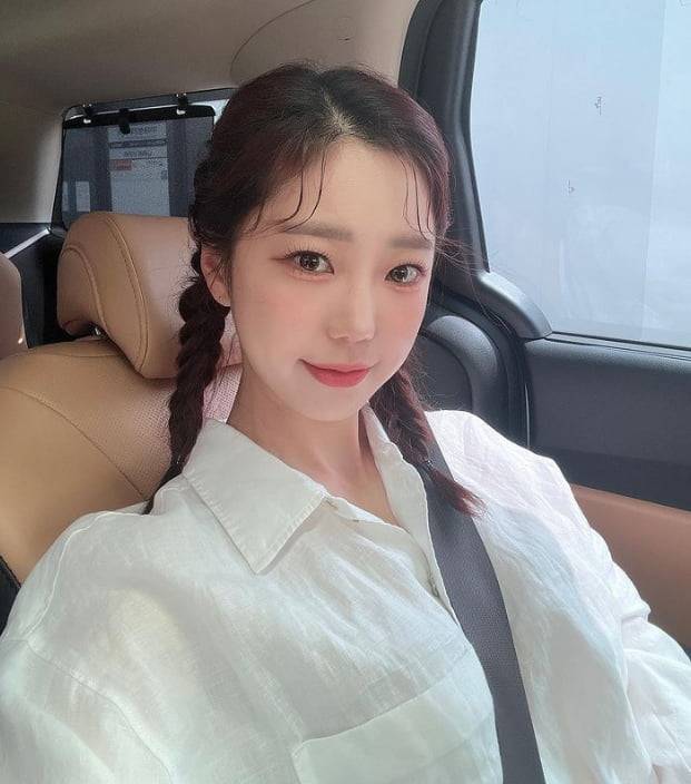 공개된 사진 속 김가영은 차안에서 셀카를 찍고 있는 모습. 양갈래를 한 그는 과즙미 넘치는 미모를 뽐냈다.