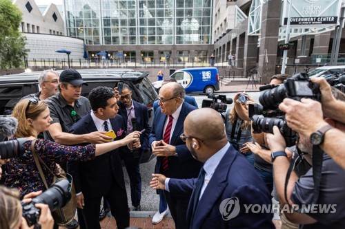 epa10125654 Rudy Giuliani, who previously served as personal lawyer for former US President Donald J. Trump, arrives at the Fulton County Courthouse to be questioned by a Fulton County special grand jury, in Atlanta, Georgia, USA, 17 August 2022. The special grand jury is investigating whether Trump and his associates illegally tried to influence the 2020 presidential election results in Georgia. EPA/DUSTIN CHAMBERS