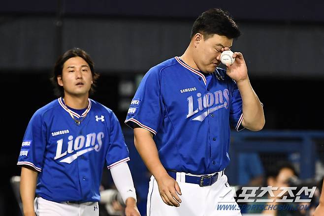 2022 KBO리그 LG 트윈스와 삼성 라이온즈의 경기가 17일 잠실구장에서 열렸다. 경기에서 패한 삼성 선수들이 아쉬워하고 있다. 잠실=박재만 기자 pjm@sportschosun.com/2022.08.17/