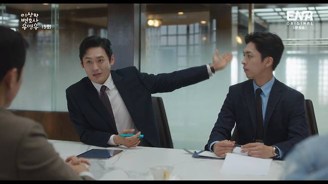 영우가 말하는 의도를 정확하게 알던 명석과 다르게 승준은 진실을 콕 집어내는 그녀의 태도에 불쾌함을 드러냈다. "방통위의 3천억 부과는 실수가 아닌 매출액의 3% 이하의 과징금을 부과할 수 있기 때문"이라는 영우의 논리적인 설명에도 승준은 "더럽게 건방지네. 나랑 일하려면 묻지 않은 말 하지 말고, 시키지 않은 일 하지 말라"고 경고했다.
