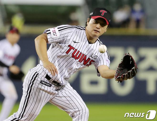 (서울=뉴스1) 김진환 기자 = 17일 오후 서울 송파구 잠실야구장에서 열린 '2022 신한은행 SOL KBO리그’ 삼성 라이온즈와 LG 트윈스의 경기, LG 마무리 고우석이 9회초 경기를 마무리 짓는 수비를 하고 있다. 2022.8.17/뉴스1