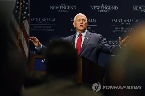 Former Vice President Mike Pence gestures during the "Politics and Eggs" breakfast gathering, Wednesday, Aug. 17, 2022, in Manchester, N.H. (AP Photo/Charles Krupa)