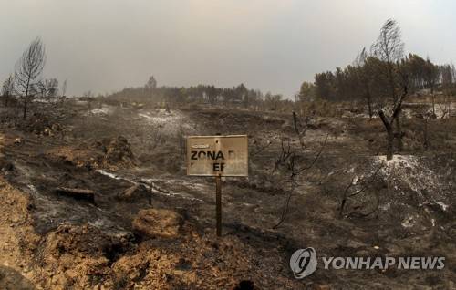 A burned hillside during a wildfire in Viver, eastern Spain, on Wednesday, Aug. 17, 2022. The European Forest Fire Information System says 275,000 hectares (679,000 acres) have burned in wildfires so far this year in Spain. That's more than four times the country's annual average of 67,000 hectares (165,000 acres) since 2006, when records began. (AP Photo/Alberto Saiz)