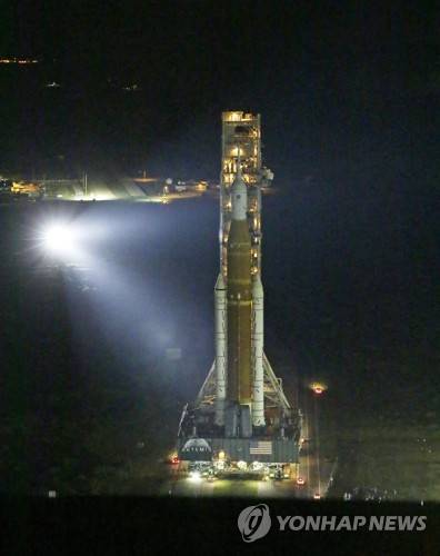The NASA Artemis rocket with the Orion spacecraft aboard leaves the Vehicle Assembly Building moving slowly to pad 39B at the Kennedy Space Center in Cape Canaveral, Fla., late Tuesday, Aug. 16, 2022. NASA is aiming for an Aug. 29 liftoff for the lunar test flight. (AP Photo/Terry Renna)