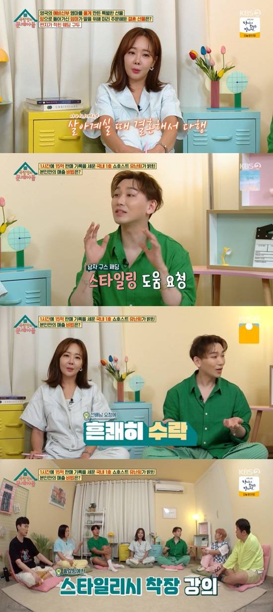홈쇼핑계 완판남 김호영은 "처음 홈쇼핑에 데뷔한 게 유난희 선배님 덕이다. '유난희 쇼' 남자 구스 패딩을 파는 타임에 스타일링 도움을 요청하셨다. 그래서 도중에 들어가서 스타일리시 착장 강의를 했다"라고 데뷔 과정을 떠올렸다.