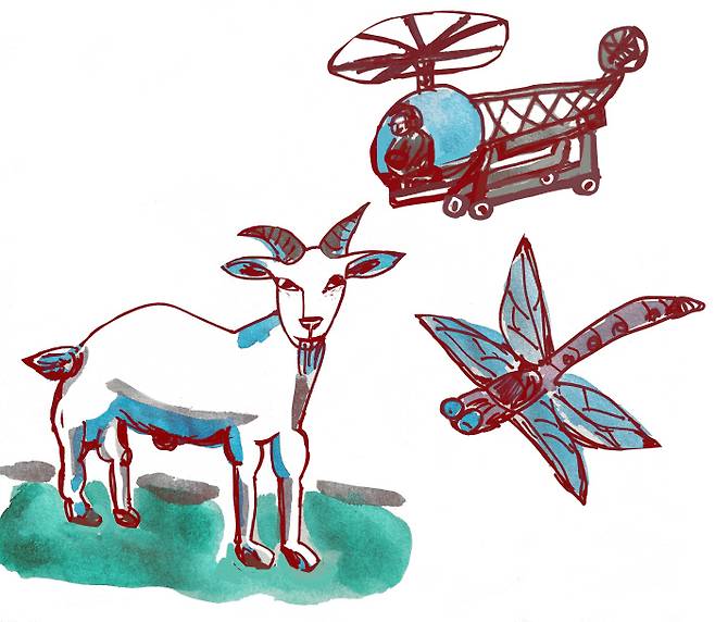 사람 친구가 가끔 염소처럼 말할 때가 있어 깜짝 놀라곤 해. 전화기 저편에서 “머해해~” 그러면 “암껏두 안해해~” 염소처럼 대답하지. “검정콩 똥은 잘 쌌어? 책은 잘 씹어 먹었어?” 친구에게 염소나 된 거처럼 물어봐. 염소나 잠자리처럼 당신 곁을 맴맴 맴돌지.