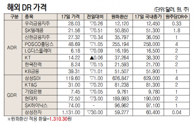 [데이터로 보는 증시]해외 DR 가격( 8월 17일)