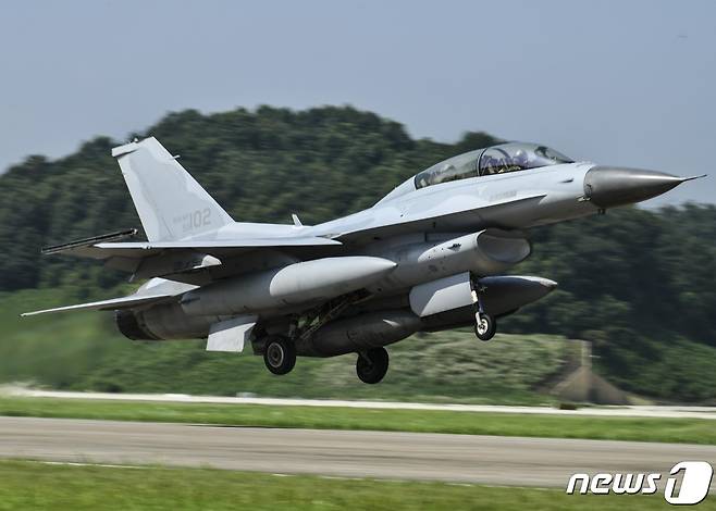공군 KF-16 전투기가 피치블랙 훈련 전개에 대비한 장시간 체공비행을 위해 이륙하고 있다. (공군 제공) 2022.8.18/뉴스1