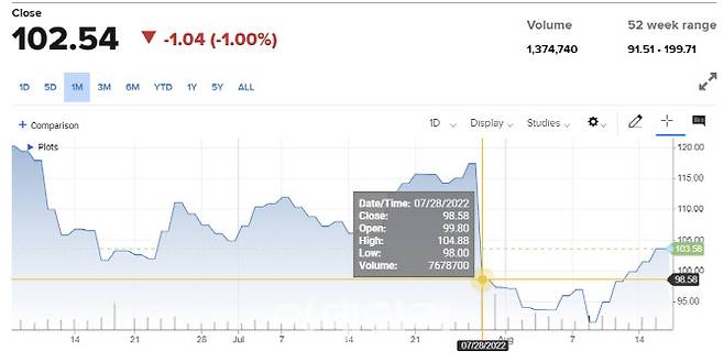 시장에 충격을 준 것은 부진한 실적보다 올해 연간 EPS 전망치를 대폭 낮춘 데 있다. 종전 EPS 전망치 9.5~10.5달러를 5~6달러로 수정하면서 당시 주가는 16% 급락하기도 했다.