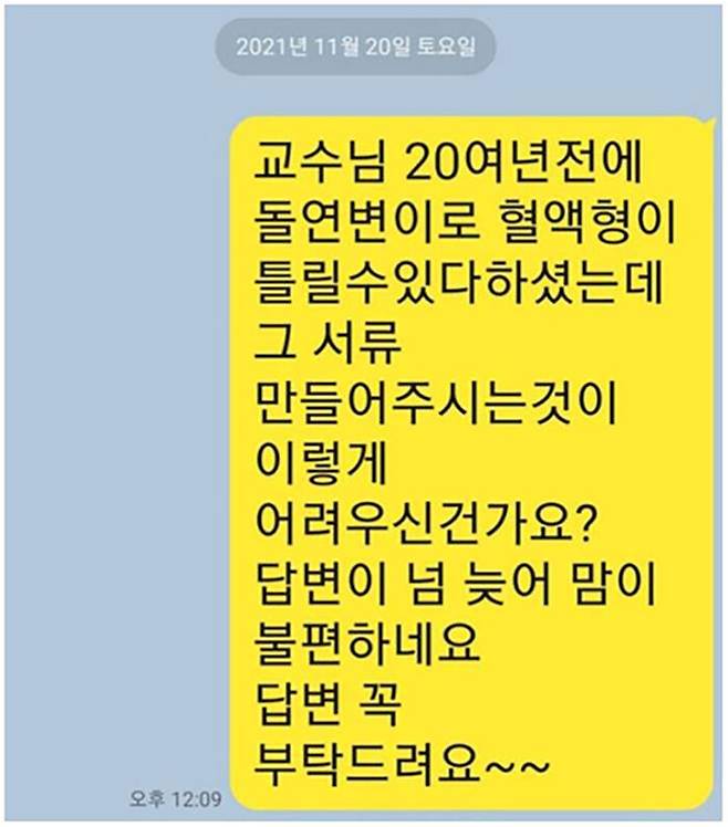 당시 혈액형 검사 결과를 토대로 시험관 시술을 했던 담당 교수에게 물어봤지만, 해당 교수는 "시험관 아기한테는 돌연변이 사례가 있을 수 있다. 걱정할 것 없다"고 말했다고 합니다.