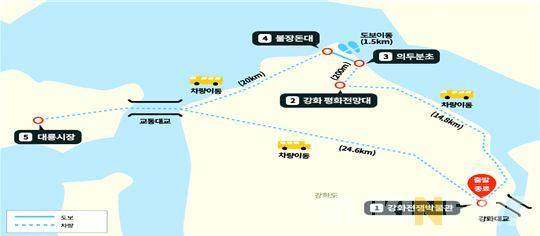 이중 강화군 노선은 '강화전쟁박물관→강화평화전망대→의두분초→철책선 도보길→불장돈대→대룡시장'을 둘러보는 코스다.