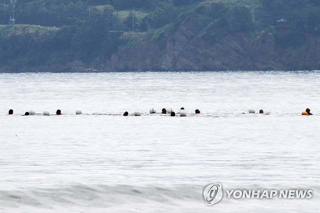 (포항=연합뉴스) 손대성 기자 = 18일 경북 포항시 남구 해안에서 해병대 1사단 장병들이 전투수영훈련을 하고 있다. 2022.8.18