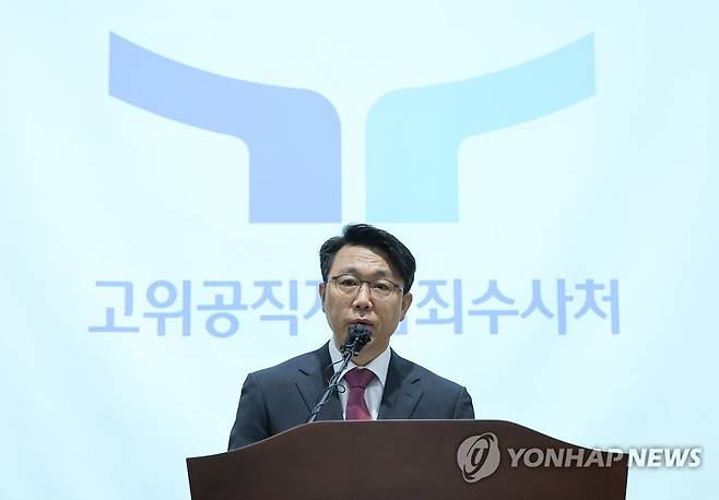 (과천=연합뉴스) 홍해인 기자 = 김진욱 고위공직자범죄수사처장이 18일 정부과천청사 고위공직자범죄수사처(공수처)에서 새로운 CI를 공개하고 있다.