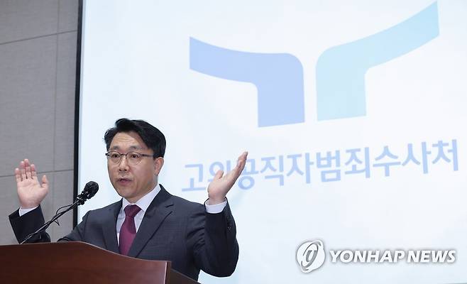 (과천=연합뉴스) 홍해인 기자 = 김진욱 고위공직자범죄수사처장이 18일 정부과천청사 고위공직자범죄수사처(공수처)에서 새로운 CI를 공개하고 있다.