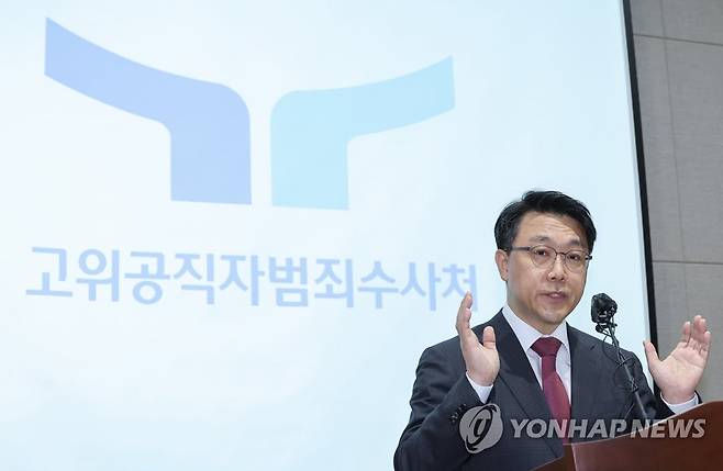 (과천=연합뉴스) 홍해인 기자 = 김진욱 고위공직자범죄수사처장이 18일 정부과천청사 고위공직자범죄수사처(공수처)에서 새로운 CI를 공개하고 있다.