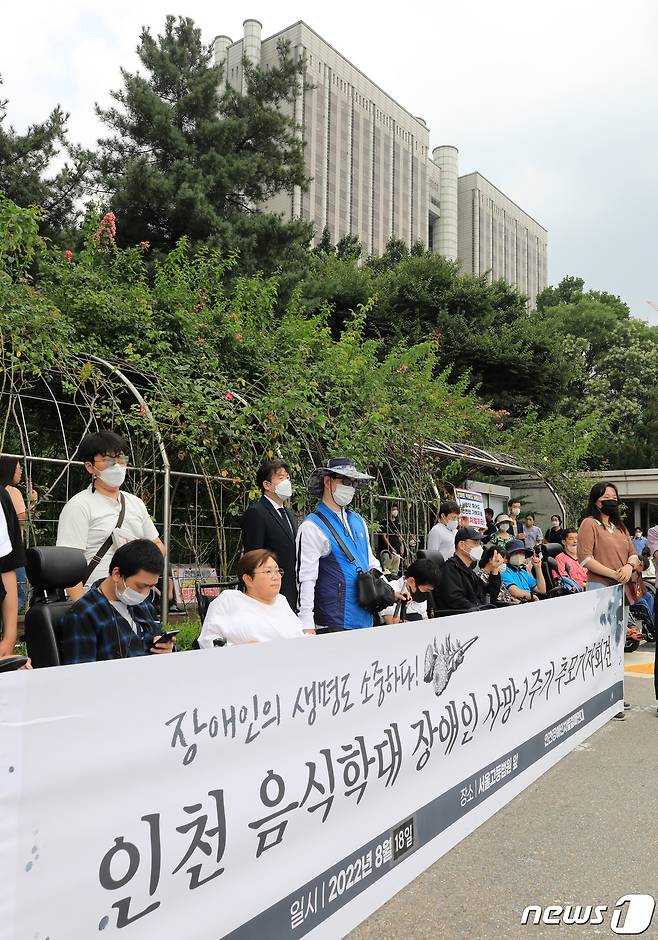 앞서 지난해 8월 12일 발달장애인 고(故) 장희원 씨가 인천 연수구장애인주간보호센터에서 사회복지사와 사회복무요원의 반복적인 학대와 폭행으로 사망했다. 주범인 사회복지사 A씨는 1심에서 징역 4년형을 받고 항소해 2심이 진행중이고, 공범인 사회복지사와 사회복무요원 등 은 1심 재판이 진행중이다. 2022.8.18/뉴스1