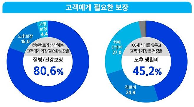 삼성생명 컨설턴트들이 생각할 때 고객이 가장 필요하다고 생각하는 보장은 '건강보장'인 것으로 나타났다.