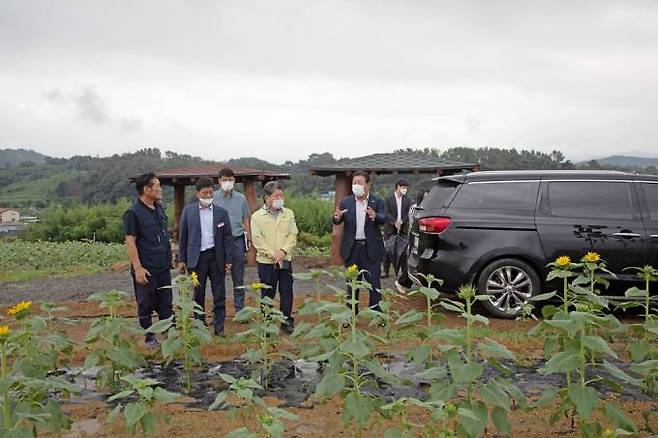 조근제 함안군수와 관계 공무원은 지난 17일 제10회 강주마을 해바라기 축제를 앞두고 법수면 강주마을에 소재한 해바라기 재배지 현장을 점검했다.