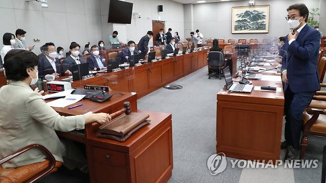 (서울=연합뉴스) 이정훈 기자 = 18일 오후 국회에서 열린 정치개혁특별위원회 전체회의에서 남인순 위원장이 회의를 주재하고 있다. 2022.8.18 [국회사진기자단]