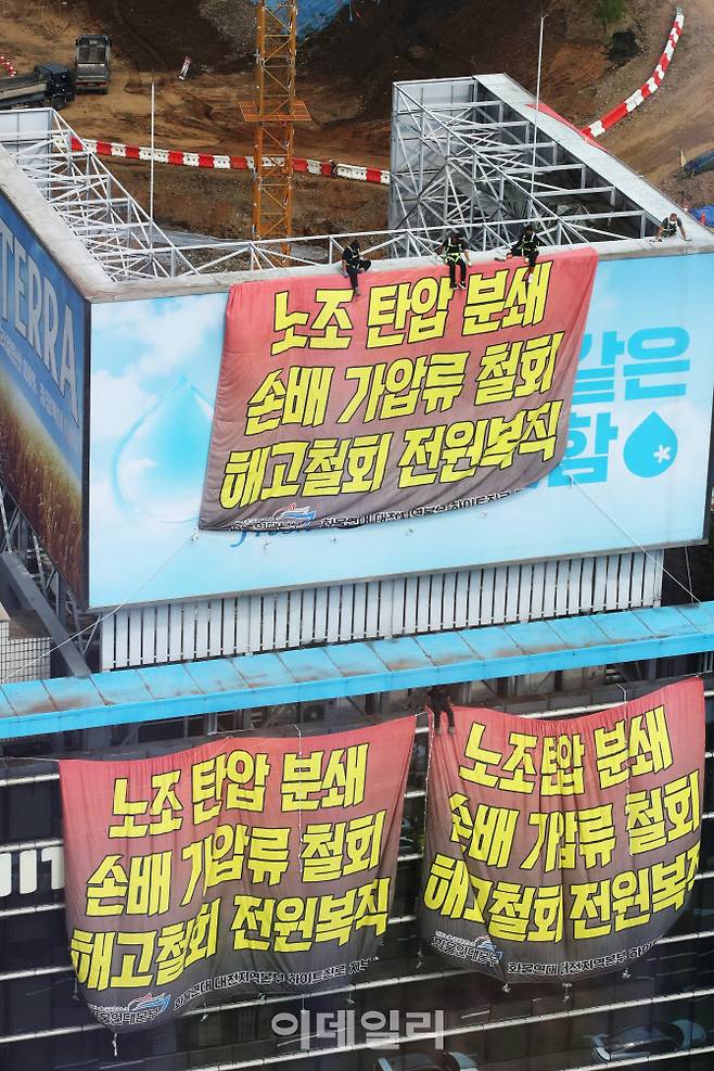[포토]하이트진로에서 고공농성투쟁 펼치는 화물연대
