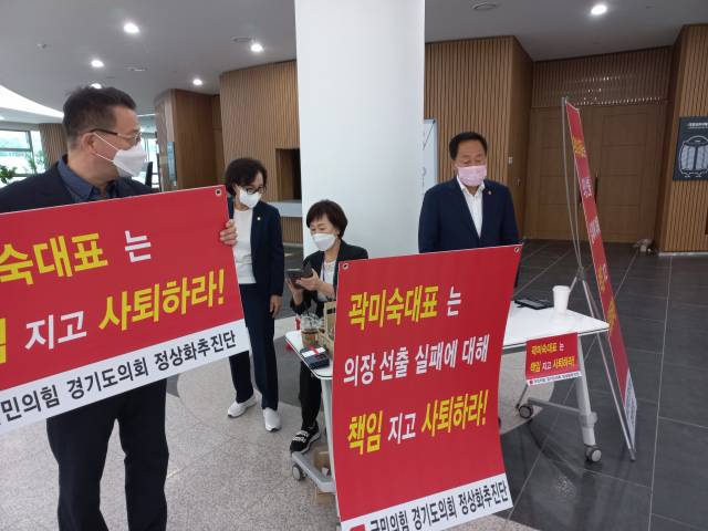 경기도의회 국민의힘이 의장 선거 패배 책임을 놓고 표결에 붙인 ‘곽미숙 대표의원 불신임’ 안건의 효력 여부를 놓고 내부 갈등을 빚고 있다.