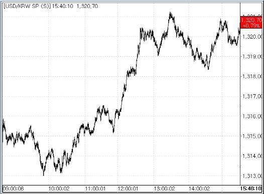 원·달러 환율이 10원 이상 올라 지난달 이후 약 한달여만에 1320원대로 급등했다.