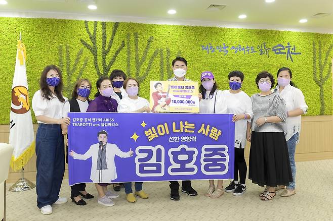 가수 김호중 팬카페의 봉사 동호회인 '셀럽아리스'가 지난 17일 순천시장애인체육회에 후원금 1000만원을 전달했다.