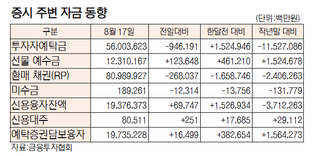 [데이터로 보는 증시]증시 주변자금 동향(8월 17일)