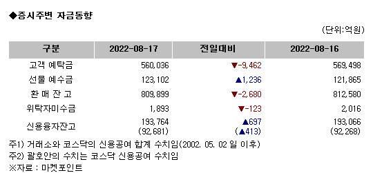 [표]증시주변 자금동향 (8/17)