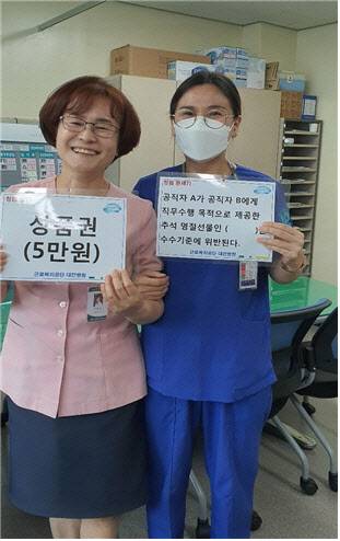 [이데일리 이순용 기자] 근로복지공단 대전병원(병원장 이용만)은 18일 전 직원이 청렴· 반부패 활동에 보다 재미 있는 청렴활동에 참여할 수 있도록 “달려라! 청렴맨!” 이벤트를 실시했다.