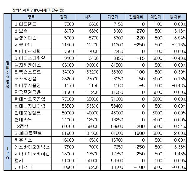 [표]장외주식 거래현황(8/18)