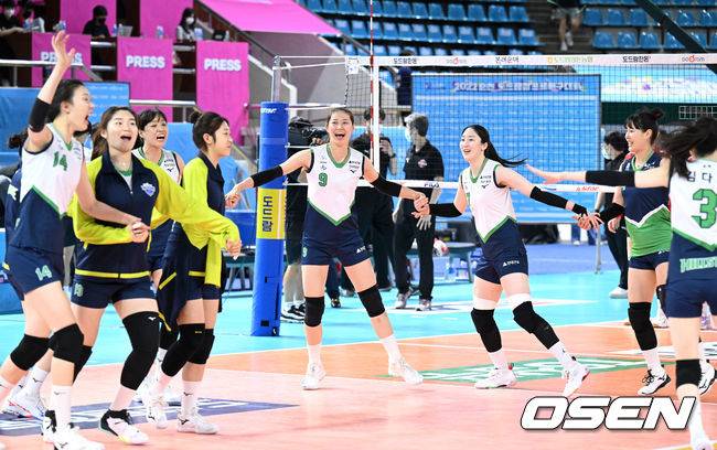 경기 종료 후 현대건설 선수들이 승리의 기쁨을 나누고 있다. 2022.08.18 /sunday@osen.co.kr
