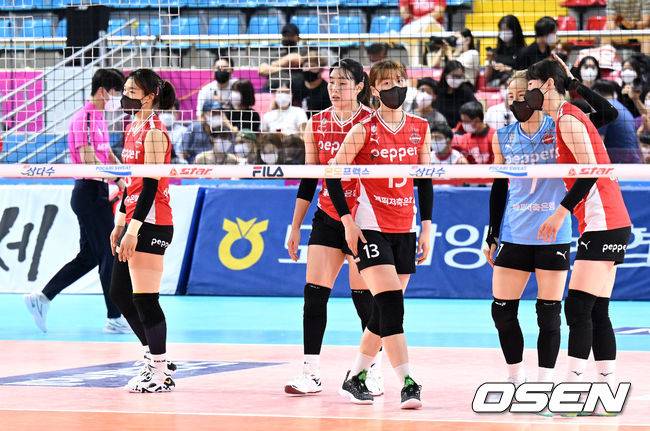 경기 종료 후 패배한 페퍼저축은행 선수들이 아쉬워하고 있다. 2022.08.18 /sunday@osen.co.kr